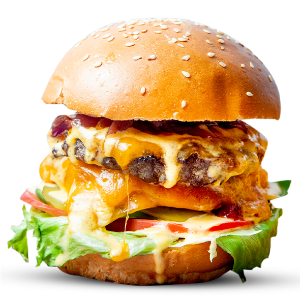 Double wagyu patty / cos lettuce / fresh tomato / spanish onion / double american cheese / burger sauce.