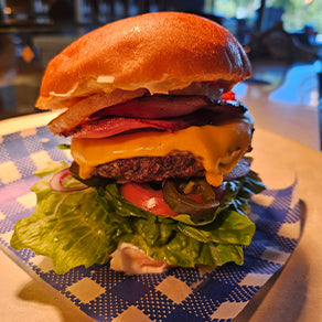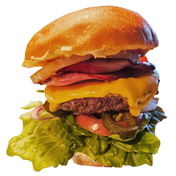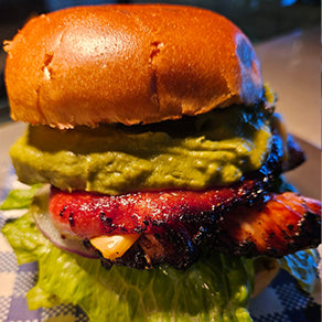 Rindless bacon / fresh guacamole / cos lettuce / green jalapeños / spanish onion / american cheese / garlic mayo.