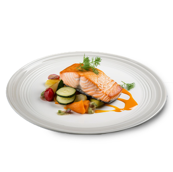 Grilled salmon / in-house seasoning / arugula salad / seafood sauce.